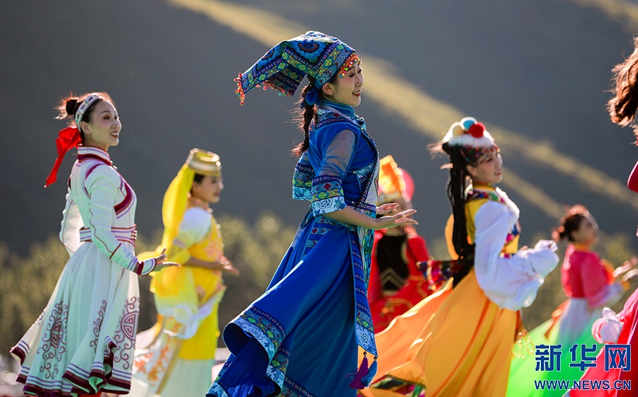 8月8日,烏蘭牧騎隊員們在開幕式上進(jìn)行文藝表演。新華網(wǎng)發(fā)(丁根厚攝)