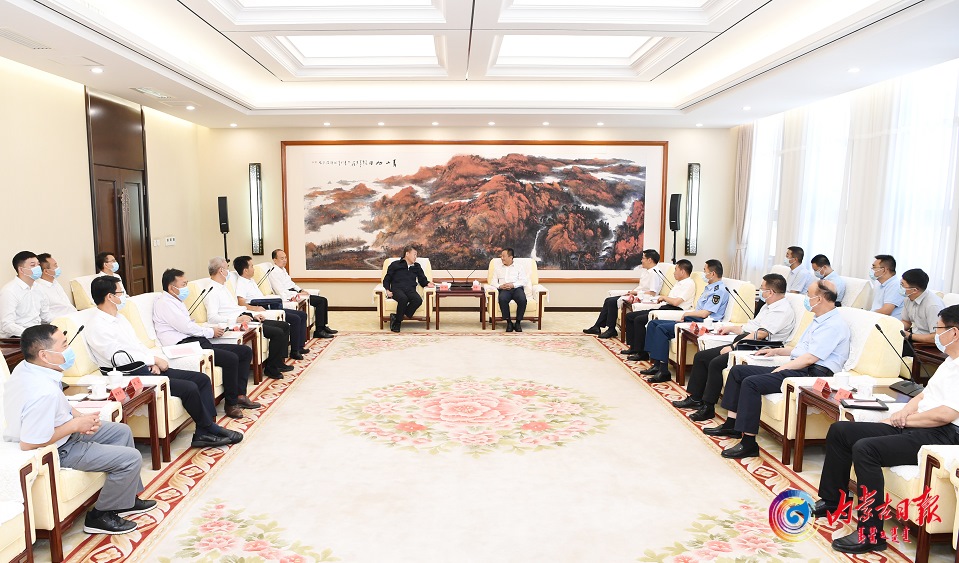 8月22日,自治區(qū)黨委書記孫紹騁在呼和浩特會(huì)見中國(guó)融通資產(chǎn)管理集團(tuán)有限公司董事長(zhǎng)溫剛一行。內(nèi)蒙古日?qǐng)?bào)社融媒體記者袁永紅攝