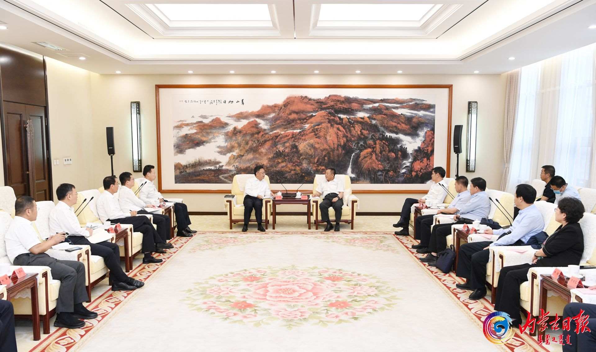 8月29日下午,自治區(qū)黨委書記孫紹騁在呼和浩特會見中國節(jié)能環(huán)保集團(tuán)黨委書記、董事長宋鑫一行。內(nèi)蒙古日報社融媒體記者袁永紅攝