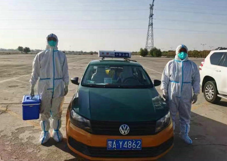 和轉(zhuǎn)運(yùn)員一起轉(zhuǎn)運(yùn)樣本(圖片由受訪者提供)