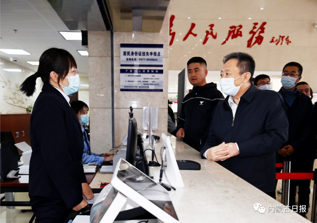 4月21日,孫紹騁在鄂爾多斯市東勝區(qū)政務(wù)服務(wù)中心向窗口工作人員詢問(wèn)便民服務(wù)情況。內(nèi)蒙古日?qǐng)?bào)社融媒體記者馬建荃攝