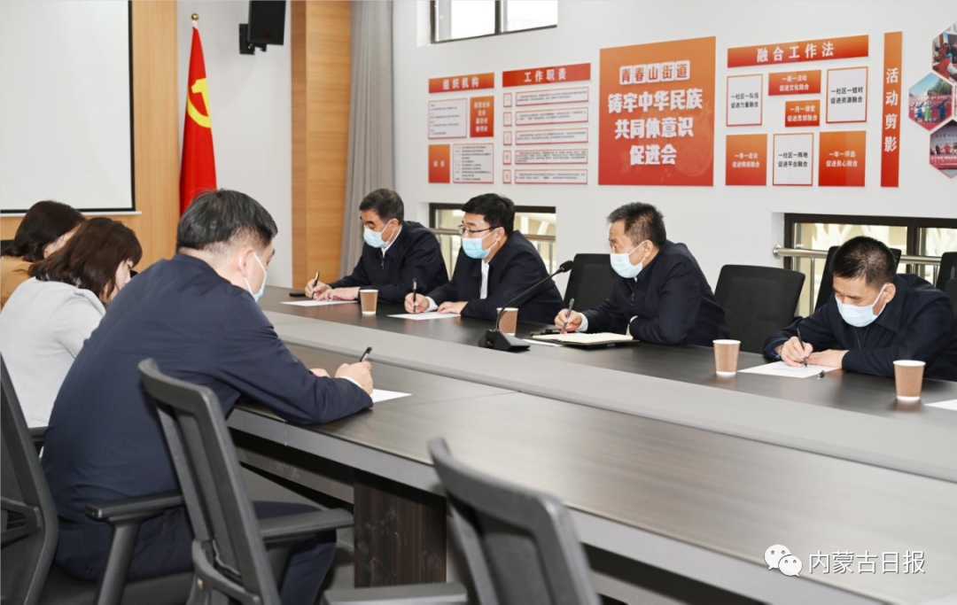4月20日,孫紹騁在鄂爾多斯市康巴什區(qū)青春山街道神華康城社區(qū)與區(qū)、街道、社區(qū)干部深入交流,共同研究探討基層治理工作。內(nèi)蒙古日?qǐng)?bào)社融媒體記者馬建荃攝