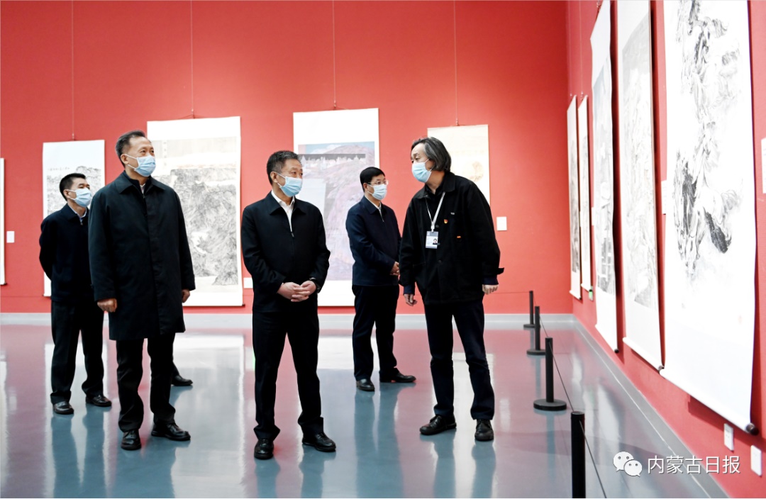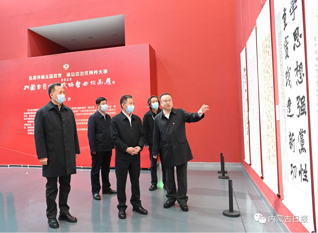 5月7日,孫紹騁來到內(nèi)蒙古美術館,參觀“扎實開展主題教育建功自治區(qū)兩件大事——2023年內(nèi)蒙古自治區(qū)政協(xié)書畫作品展”。