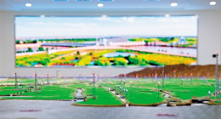 河套灌區(qū)是我國(guó)3個(gè)特大型灌區(qū)之一,也是我國(guó)重要的糧油生產(chǎn)基地,現(xiàn)已形成完整的7級(jí)灌排體系,引黃灌溉面積達(dá)1000多萬畝。160平方米的實(shí)體實(shí)時(shí)數(shù)字沙盤是微縮版的“河套灌區(qū)”,可以清晰地看到整個(gè)灌區(qū)的灌排體系。