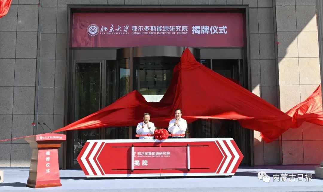 6月16日,自治區(qū)黨委書記孫紹騁、北京大學(xué)黨委書記郝平共同為北京大學(xué)鄂爾多斯能源研究院揭牌。內(nèi)蒙古日?qǐng)?bào)社融媒體記者 馬建荃 攝