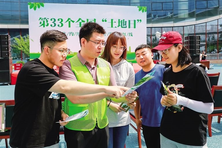 6月25日,自治區(qū)自然資源廳工作人員正在向市民宣傳耕地保護制度和節(jié)約集約用地制度的舉措和成效。當天是第33個全國土地日,宣傳主題是“節(jié)約集約用地嚴守耕地紅線”。記者孟和朝魯攝