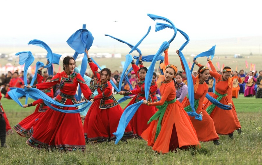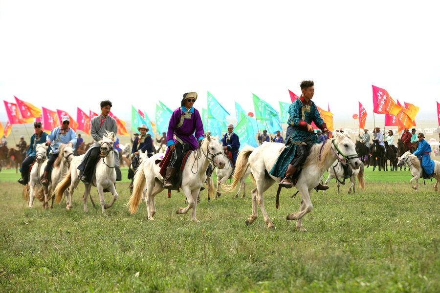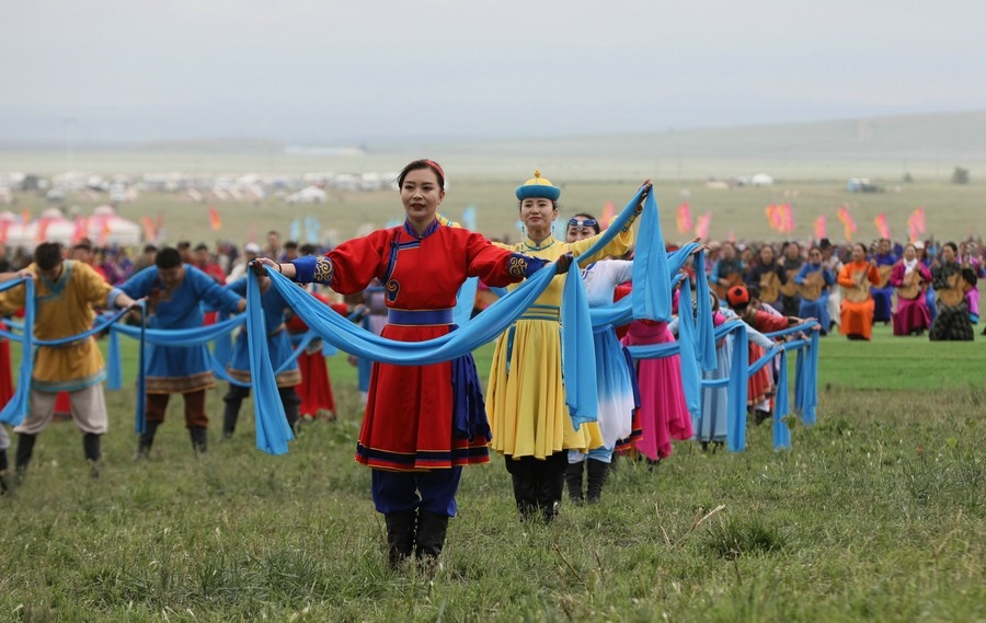7月23日,“相約草原·遇見那達慕”內(nèi)蒙古自治區(qū)第33屆旅游那達慕在錫林郭勒盟錫林浩特開幕。當天,近10萬名觀眾和演職人員歡聚于此,載歌載舞,共慶草原盛會。