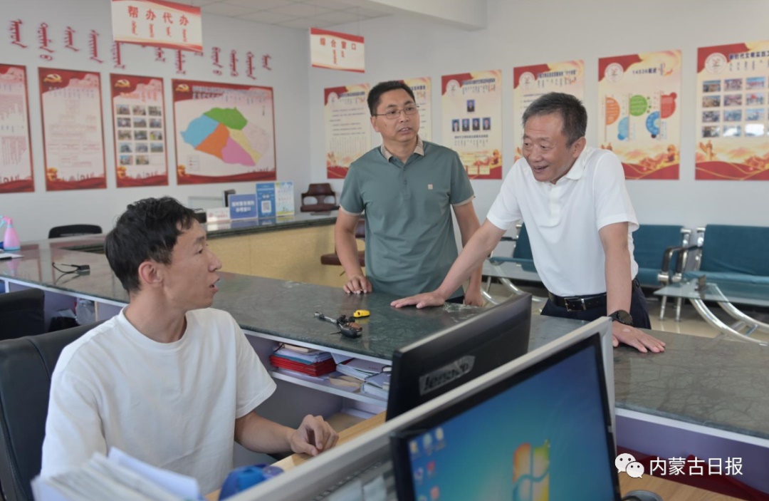 8月13日,自治區(qū)黨委書記孫紹騁在蘇尼特左旗賽罕高畢蘇木黨群服務(wù)中心與窗口工作人員深入交流。內(nèi)蒙古日報(bào)社融媒體記者 馬建荃 攝