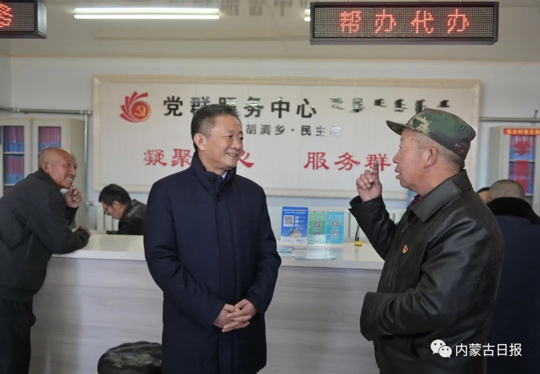 11月6日,自治區(qū)黨委書記孫紹騁在察右后旗烏蘭哈達(dá)蘇木黨群服務(wù)中心,與干部群眾深入交流,詳細(xì)了解第二批主題教育和“感黨恩、聽黨話、跟黨走”群眾教育實(shí)踐活動(dòng)開展情況。記者 馬建荃 攝