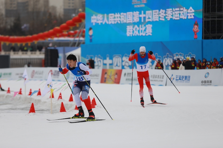 1月13日,“十四冬”群眾比賽在呼和浩特東河冰場開賽。在上午進(jìn)行的男子越野滑雪4*1.5km預(yù)賽中,內(nèi)蒙古代表隊獲得小組第二。