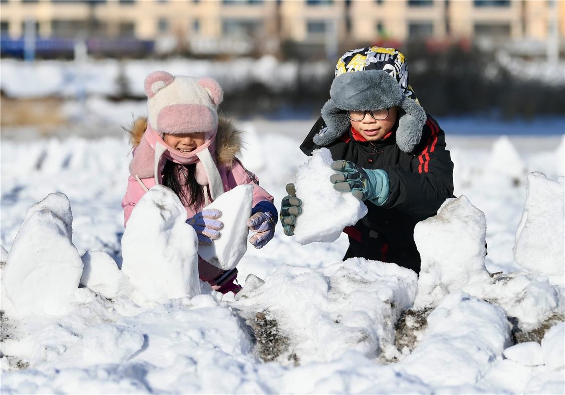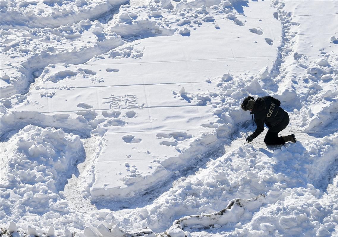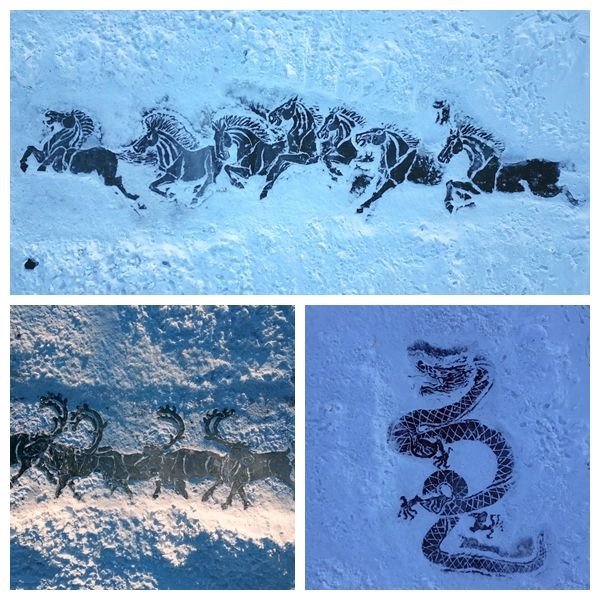 在伊敏河冰面上雕刻出