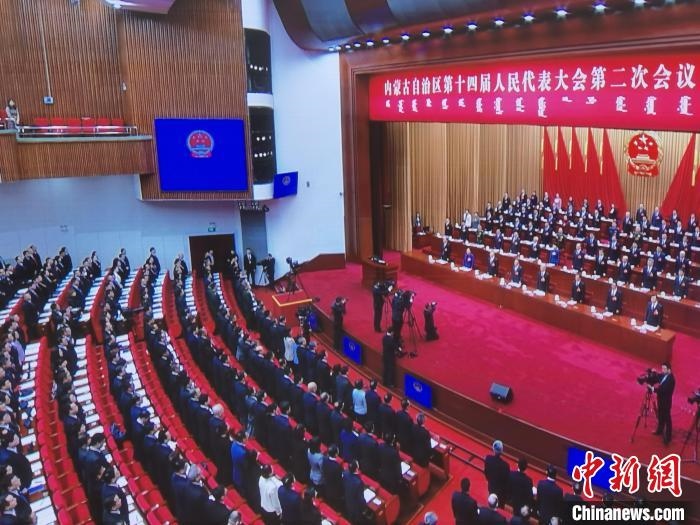 圖為內(nèi)蒙古自治區(qū)十四屆人大二次會議現(xiàn)場?! ±類燮?攝