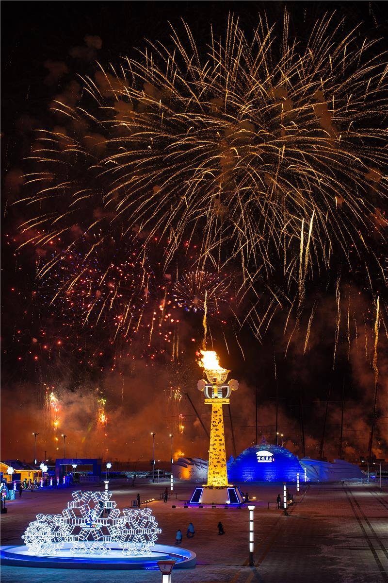“十四冬”主火炬熊熊燃燒。