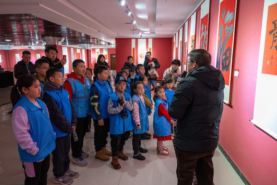 活動現(xiàn)場,20余名小朋友在家長的陪同下,參觀了“藝美北疆 遇見青城”——呼和浩特市百福迎春賀歲作品展”和“藝美北疆 新春納福”——池上墨苔 水墨集中國書畫名家邀請展,小朋友在呼和浩特美術(shù)館老師的講解下,了解了春節(jié)貼“?!弊质俏覈耖g由來已久的風俗,“?!蔽幕侵腥A優(yōu)秀傳統(tǒng)文化的組成部分,激發(fā)了小朋友們對傳統(tǒng)文化的熱愛。