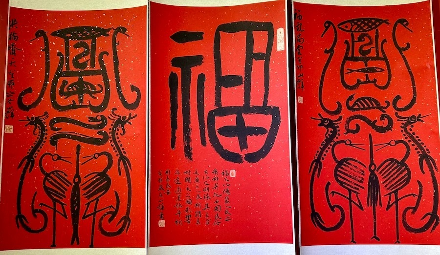 “媽媽我又認識了一個‘?!?,原來元宵節(jié)也要貼‘福’字,還要貼吉祥的畫,我還要和玉兔一起吃元宵。”5歲的陳昭穎參觀完百福迎春賀歲作品展后因為認識一個“?!弊珠_心地說。