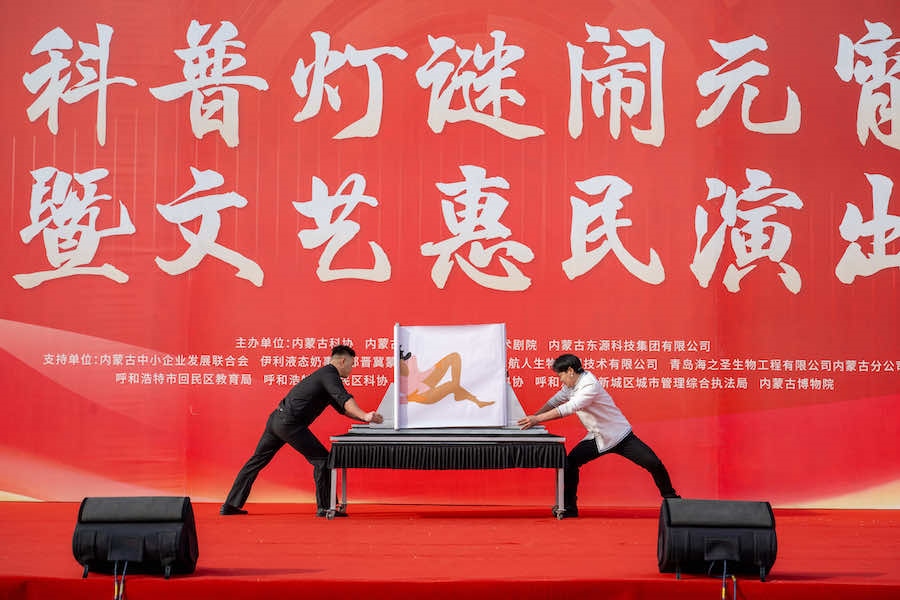 當日(正月十四),內(nèi)蒙古科協(xié)等單位在寶鼎廣場舉辦了科普燈謎鬧元宵暨文藝惠民演出活動。