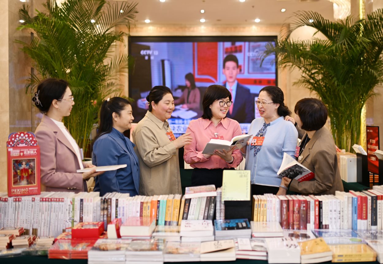 3月7日,參加十四屆全國人大二次會議的內(nèi)蒙古代表團(tuán)的女代表們在會議間隙來到駐地書吧,選購自己喜歡的書籍。大會開幕以來,她們圍繞我區(qū)經(jīng)濟建設(shè)、科技創(chuàng)新、鄉(xiāng)村振興等方面提建議、談感受,積極建言獻(xiàn)策,為奮力書寫中國式現(xiàn)代化內(nèi)蒙古新篇章貢獻(xiàn)力量。草原全媒記者馬建荃孟和朝魯攝