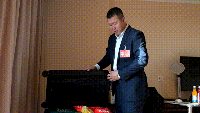 在全國人大代表、烏蘭察布市卓資縣十八臺鎮(zhèn)黃旗灘村黨支部書記、村委會主任薛志龍的行李箱里,幾只密封包裝的卓資熏雞、兩瓶不同吃法的亞麻籽油、些許袋裝的亞麻籽,占據(jù)了行李箱一多半的空間,這些獨有的美味也吸引了來自各地的全國人大代表的目光。