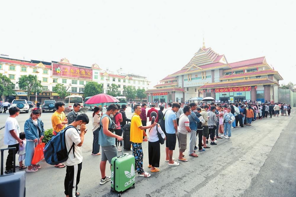 邊民在云南瑞麗口岸排隊等待通關(guān)。云南日報記者陳飛攝