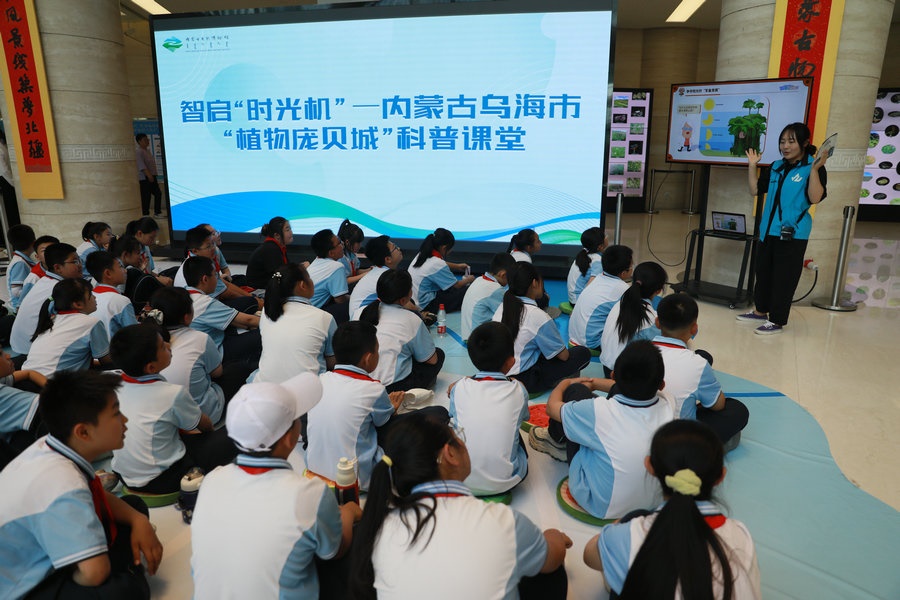 公益科普活動中,邀請大學(xué)路小學(xué)的學(xué)生參與以內(nèi)蒙古烏海市“植物龐貝城”前沿科研成果為依托開發(fā)的智啟“時光機”科普課程;開展化石形成的動手體驗活動,在做中教,在做中學(xué),以“勞”啟智,“動”促成長;進行“自然+環(huán)保+藝術(shù)”環(huán)保服裝創(chuàng)新設(shè)計靜態(tài)展示,同公眾一起解讀設(shè)計師的服飾設(shè)計“密碼”;聆聽“小小講解員”的科普聲,在對壯美內(nèi)蒙古的講解中,植種初心,讓德育“自然”花開。