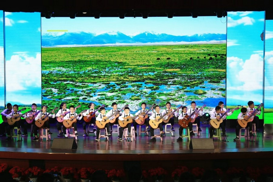 合唱《強(qiáng)國(guó)一代有我在》《祖國(guó)有我》、古典吉他合奏《天邊》、京劇《梨園薈萃》、朗誦《致敬祖國(guó)》、中國(guó)舞《碇步橋》、合唱《黨的孩子》《四季的問(wèn)候》、《民族團(tuán)結(jié)英雄贊歌》、古箏齊奏《上春山》、拉丁現(xiàn)代舞《紅旗飄飄》、朗誦《你好,未來(lái)的我們》、師生舞蹈《外婆橋》、合唱《石榴籽一家親》等13個(gè)展演節(jié)目輪番上演。