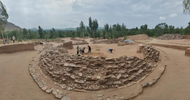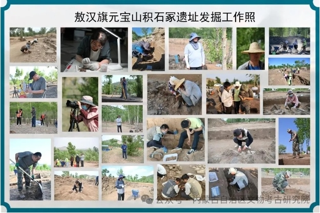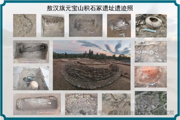 2023年11月,位于赤峰市敖漢旗下洼鎮(zhèn)元寶山積石冢被盜,當(dāng)?shù)匚奈锕芾聿块T上報(bào)后,2024年初內(nèi)蒙古自治區(qū)文物考古研究院經(jīng)自治區(qū)文物局批準(zhǔn),以搶救性考古發(fā)掘向國(guó)家文物局申請(qǐng)并得以批準(zhǔn)。4月底,組隊(duì)對(duì)該地點(diǎn)及周邊開展調(diào)查并進(jìn)行了勘探。5月正式啟動(dòng)發(fā)掘,截止目前已明確該地點(diǎn)為一處集墓葬建筑與祭祀建筑一體的紅山文化遺存。也是目前所知內(nèi)蒙古自治區(qū)唯一的一處南方北圓、南壇北冢的紅山文化晚期建筑遺存。