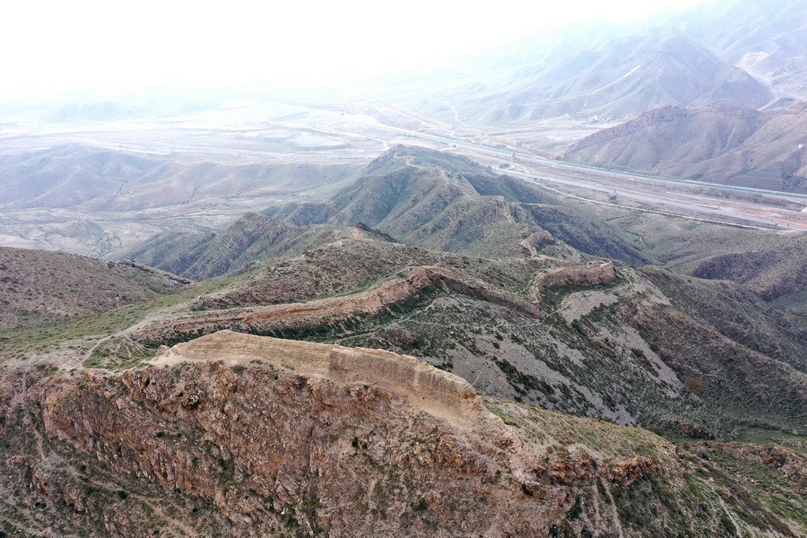 10月12日,從空中俯瞰三關長城。