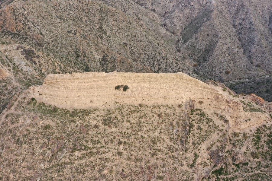 10月12日,從空中俯瞰內蒙古與寧夏交界處的三關長城。