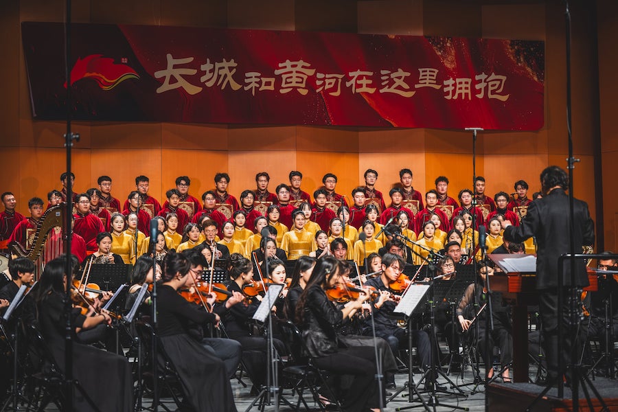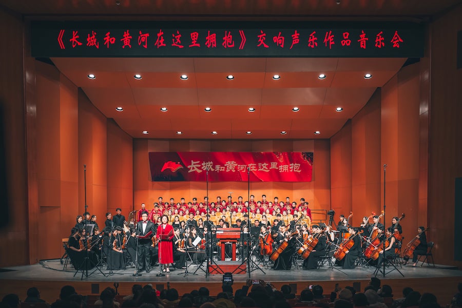 12月20日晚,“長(zhǎng)城和黃河在這里擁抱”交響聲樂作品音樂會(huì)在內(nèi)蒙古藝術(shù)學(xué)院新華校區(qū)演藝廳華美上演。