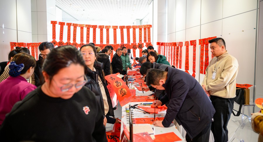 活動(dòng)吸引了眾多書法愛(ài)好者和市民朋友積極參與,大家在現(xiàn)場(chǎng)揮毫潑墨,將新春的美好祝愿融入字里行間,充滿了對(duì)新年的期待與祝福。