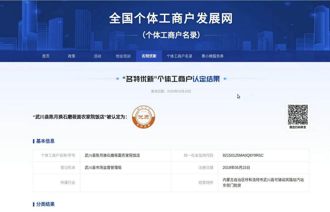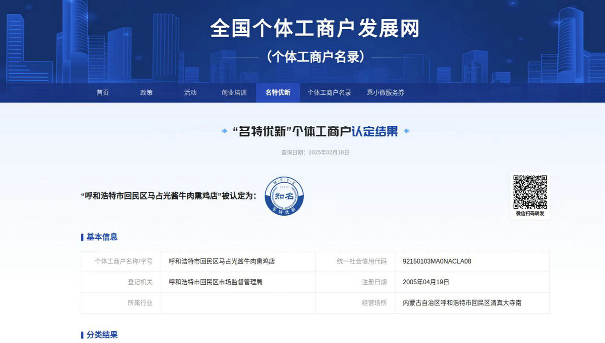 北疆新聞呼和浩特2月19日消息(記者 張?chǎng)?近日,呼和浩特市首批27戶個(gè)體工商戶獲評(píng)全國(guó)“名特優(yōu)新”個(gè)體工商戶,覆蓋餐飲、批發(fā)零售、食品加工、居民服務(wù)等多個(gè)行業(yè)領(lǐng)域。