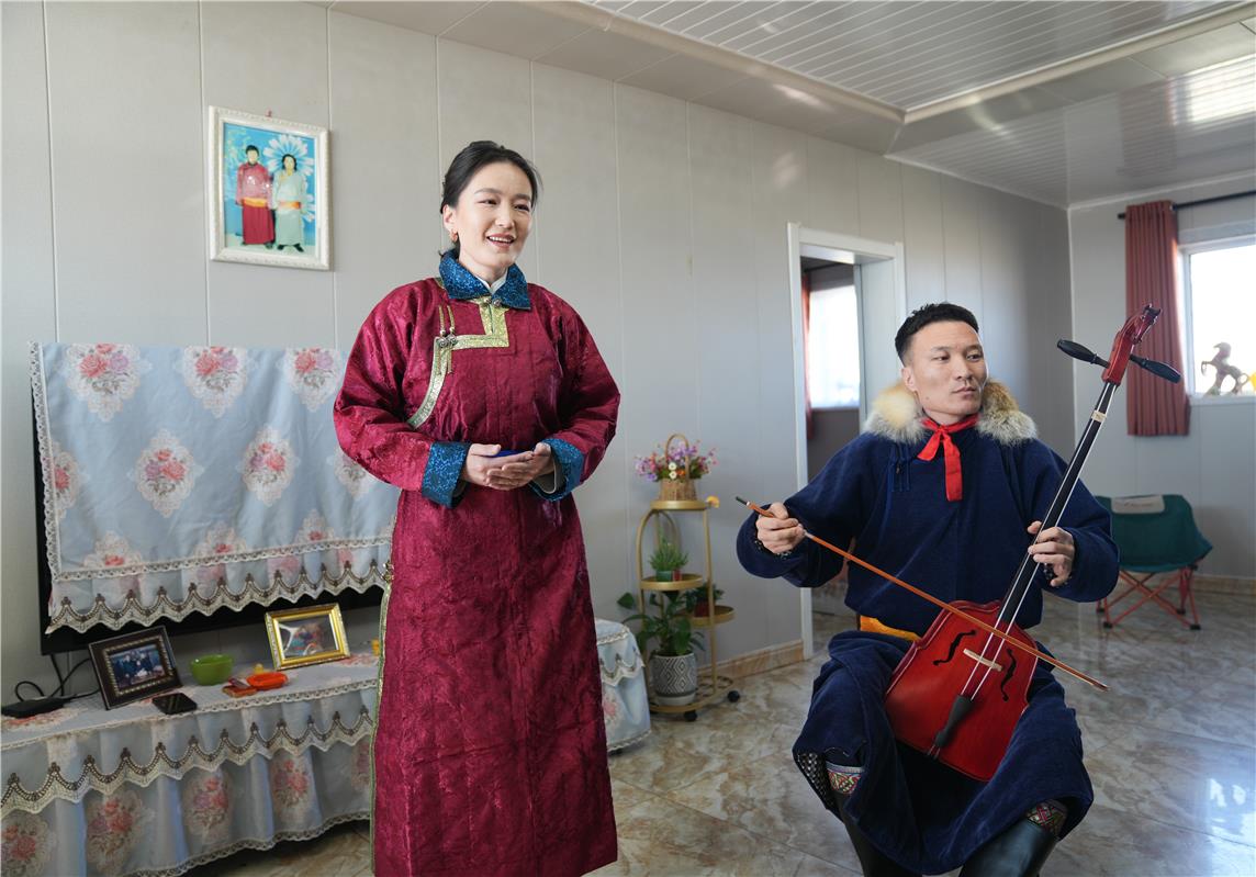 走進(jìn)蘇尼特左旗滿都拉圖鎮(zhèn)巴彥淖爾嘎查牧民格日勒的家里,傳來(lái)悠揚(yáng)的馬頭琴聲、優(yōu)美的歌聲。阿拉騰達(dá)來(lái)帶領(lǐng)幾名烏蘭牧騎隊(duì)員,開(kāi)展基層演出服務(wù),不僅將歡樂(lè)送到了牧民家,更是作為政協(xié)委員,關(guān)心關(guān)注牧民的生產(chǎn)生活。