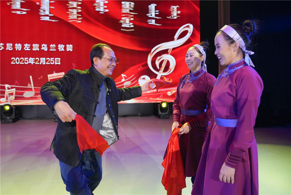 “如今,內(nèi)蒙古大地上活躍著75支像我們這樣的烏蘭牧騎隊(duì)伍,3000多名隊(duì)員每年演出超過(guò)1萬(wàn)場(chǎng)。我們將牢記‘到人民中間去’,扎根生活沃土,深入挖掘內(nèi)蒙古這片廣袤土地上厚重的歷史文化資源,努力創(chuàng)作更多接地氣、傳得開(kāi)、留得下的優(yōu)秀作品,為鑄牢中華民族共同體意識(shí)、促進(jìn)民族團(tuán)結(jié)進(jìn)步貢獻(xiàn)力量?!?/p>