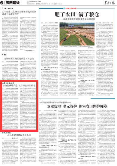 2025年4月3日,《農(nóng)民日報(bào)》第6版刊發(fā)題為《內(nèi)蒙古扎魯特旗:加快鹽堿地改造 筑牢糧食安全根基》的文章,報(bào)道了近年來,內(nèi)蒙古自治區(qū)通遼市扎魯特旗圍繞“向鹽堿地要糧,讓荒原變良田”的目標(biāo),加大鹽堿地治理力度,不斷挖掘鹽堿地開發(fā)利用價(jià)值,把工程措施、生物措施和化學(xué)改良措施有機(jī)結(jié)合起來,因地制宜、綜合治理,不斷拓展農(nóng)業(yè)耕地資源,激活鹽堿地“潛在糧倉”資源,實(shí)現(xiàn)鹽堿地資源的系統(tǒng)改良和高效利用。