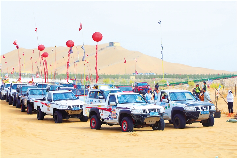 上午10時20分,第一組參賽的越野賽車如脫韁之馬,奔騰而出,在沙漠中穿梭馳騁,展現(xiàn)出車手的精湛駕駛技藝和無畏的勇氣。