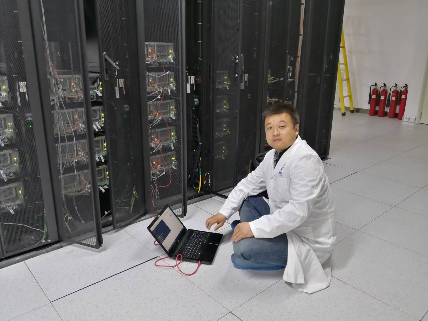 侯曉東在機(jī)房測(cè)試運(yùn)維數(shù)據(jù)。