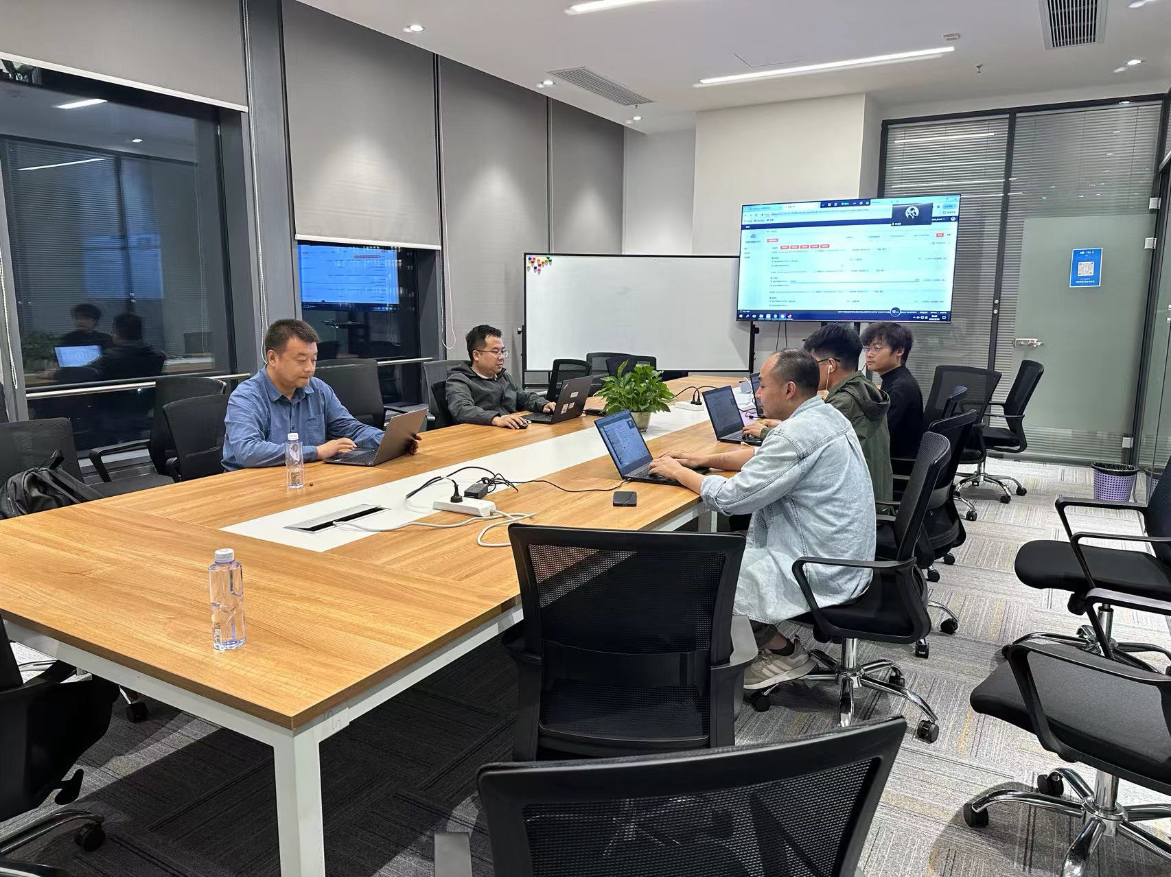 侯曉東帶領(lǐng)團(tuán)隊(duì)在討論研究業(yè)務(wù)方案。