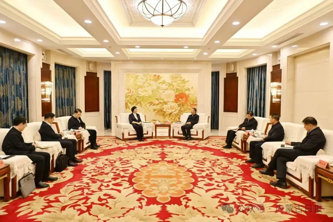自治區(qū)領(lǐng)導(dǎo)丁繡峰、于立新、奇巴圖參加會(huì)見(jiàn)。(記者 李晗)