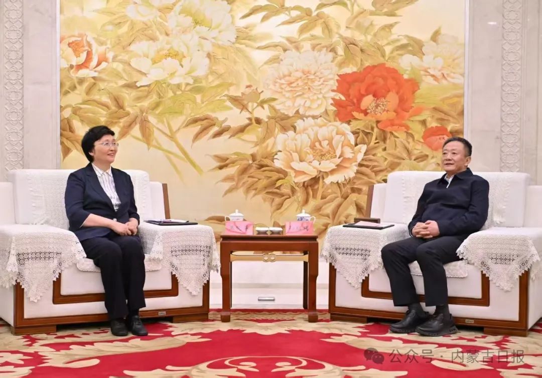 5月12日,自治區(qū)黨委書(shū)記孫紹騁在包頭會(huì)見(jiàn)人力資源和社會(huì)保障部黨組書(shū)記、部長(zhǎng)王曉萍。草原云·內(nèi)蒙古新聞網(wǎng)記者 馬建兵 攝