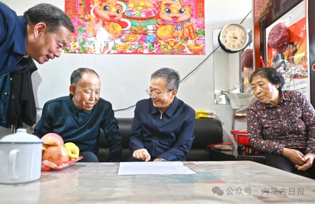 5月21日,自治區(qū)黨委書記孫紹騁在防返貧致貧監(jiān)測戶家中仔細(xì)察看惠民政策明白卡,詳細(xì)了解領(lǐng)取補(bǔ)貼情況。草原云·內(nèi)蒙古新聞網(wǎng)記者 馬建兵 攝
