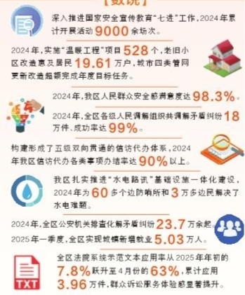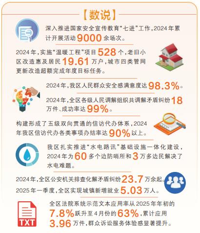 2024年,全區(qū)各級人民調(diào)解組織共調(diào)解矛盾糾紛18萬件、成功率達99%。全區(qū)信訪代辦各類事項辦結率達90%以上,一大批群眾急難愁盼事項得到及時就地解決。