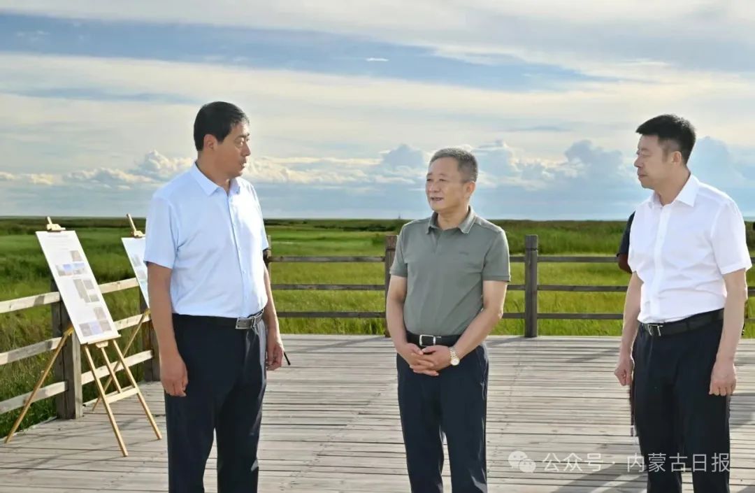8月3日,自治區(qū)黨委書(shū)記孫紹騁在烏蘭諾爾濕地調(diào)研生態(tài)保護(hù)與建設(shè)情況。草原云·內(nèi)蒙古新聞網(wǎng)記者 馬建兵 攝