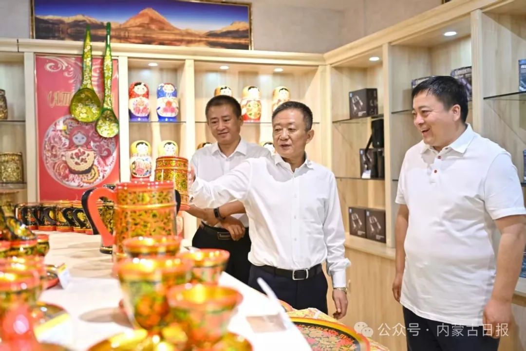 8月4日,自治區(qū)黨委書(shū)記孫紹騁在滿(mǎn)洲里市調(diào)研邊民互市貿(mào)易、落地加工等情況。草原云·內(nèi)蒙古新聞網(wǎng)記者 馬建兵 攝