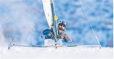 冰帆又稱“冰上快艇”,是近幾年興起的戶外運動項目。與尋常帆船比賽不同,冰帆賽的場地并非海面,而是一片光滑如鏡的冰面。冰帆的獨特之處在于船體下方配置了冰刀,選手們操縱帆具,僅憑自然風(fēng)力,就能在冰面上揚帆。相較普通帆船,冰帆的操作更為簡易,冰刀相當(dāng)于輪子,風(fēng)帆相當(dāng)于發(fā)動機(jī)。比賽場地寬200米以上、長700米以上,風(fēng)力平穩(wěn)保持在2級以上,賽時選手躺在帆船中以減少風(fēng)阻。