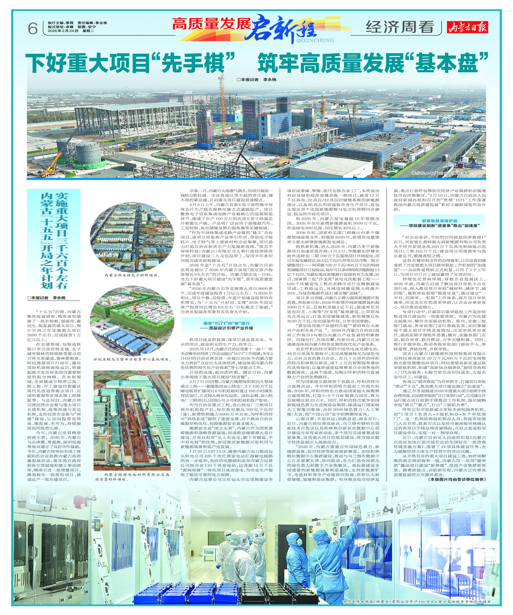 “要加快傳統(tǒng)產(chǎn)業(yè)提檔升級(jí)”“要培育壯大新興產(chǎn)業(yè)和未來產(chǎn)業(yè) ”, 2026年內(nèi)蒙古自治區(qū)《政府工作報(bào)告》勾勒出內(nèi)蒙古產(chǎn)業(yè)發(fā)展的明晰路徑。向綠而行、向高而攀、向新而進(jìn),內(nèi)蒙古正加速建設(shè)體現(xiàn)內(nèi)蒙古特色優(yōu)勢(shì)的現(xiàn)代化產(chǎn)業(yè)體系。
