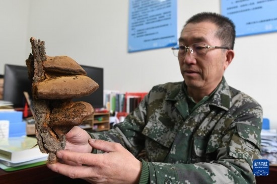 2月20日,在內(nèi)蒙古賀蘭山國家級自然保護區(qū)管理局,工作人員徐建國展示植物標本。