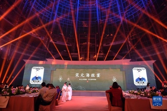 當日,福建泉州石獅市舉辦“閩菜地標美食城市”授牌暨“宋元海絲宴”推介儀式?!八卧=z宴”以南宋福建泉州石獅籍美食家林洪著作《山家清供》為還原藍本,兼收閩南名菜,集山珍、海味于一席,將菜品、宴席與宋元器皿、場景、樂曲、詩詞等融合,展現(xiàn)宋元時期世界海洋商貿中心獨特的美食文化。新華社記者 魏培全 攝