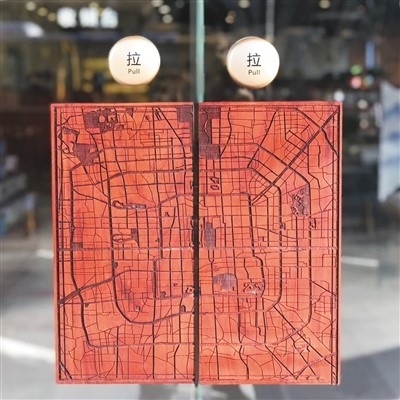 北京地圖主題書店的門把手上雕刻著北京城區(qū)地圖。地圖主題書店供圖