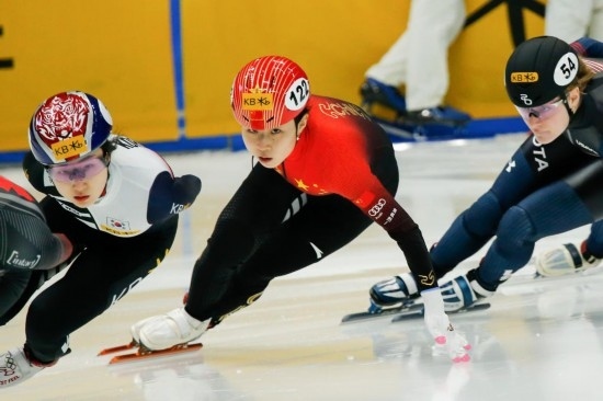 3月12日,中國選手公俐(中)在女子1000米四分之一決賽中。新華社記者 王益亮 攝