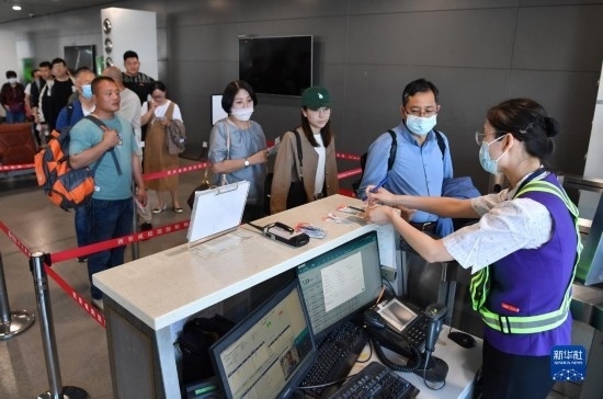 5月13日,乘坐西安-烏魯木齊-阿什哈巴德首趟航班的旅客準(zhǔn)備登機(jī)。新華社記者 邵瑞 攝